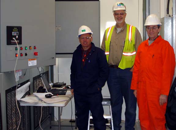 1. Насосные станции по перекачке нефти в штатах Висконсин и Иллинойс, где использованы высоковольтные приводы T300MVi мощностью 6000 HP. Каждый привод предназначен для работы с тремя двигателями и насосами и имеет три байпаса. После проведения необходимых наладочных работ привод нормально работал на отдельный двигатель. Однако, не удалось добиться безаварийного переключения работы двигателя с привода на сеть и обратно. Причина — в неправильно спроектированной схеме управления пользователя для осуществления Transfer & Capture. На втором объекте после переделки схемы управления переключениями добились нормального переключения работы двигателя с насосом от привода на сеть и обратно. Опробовали все три двигателя с насосами.
